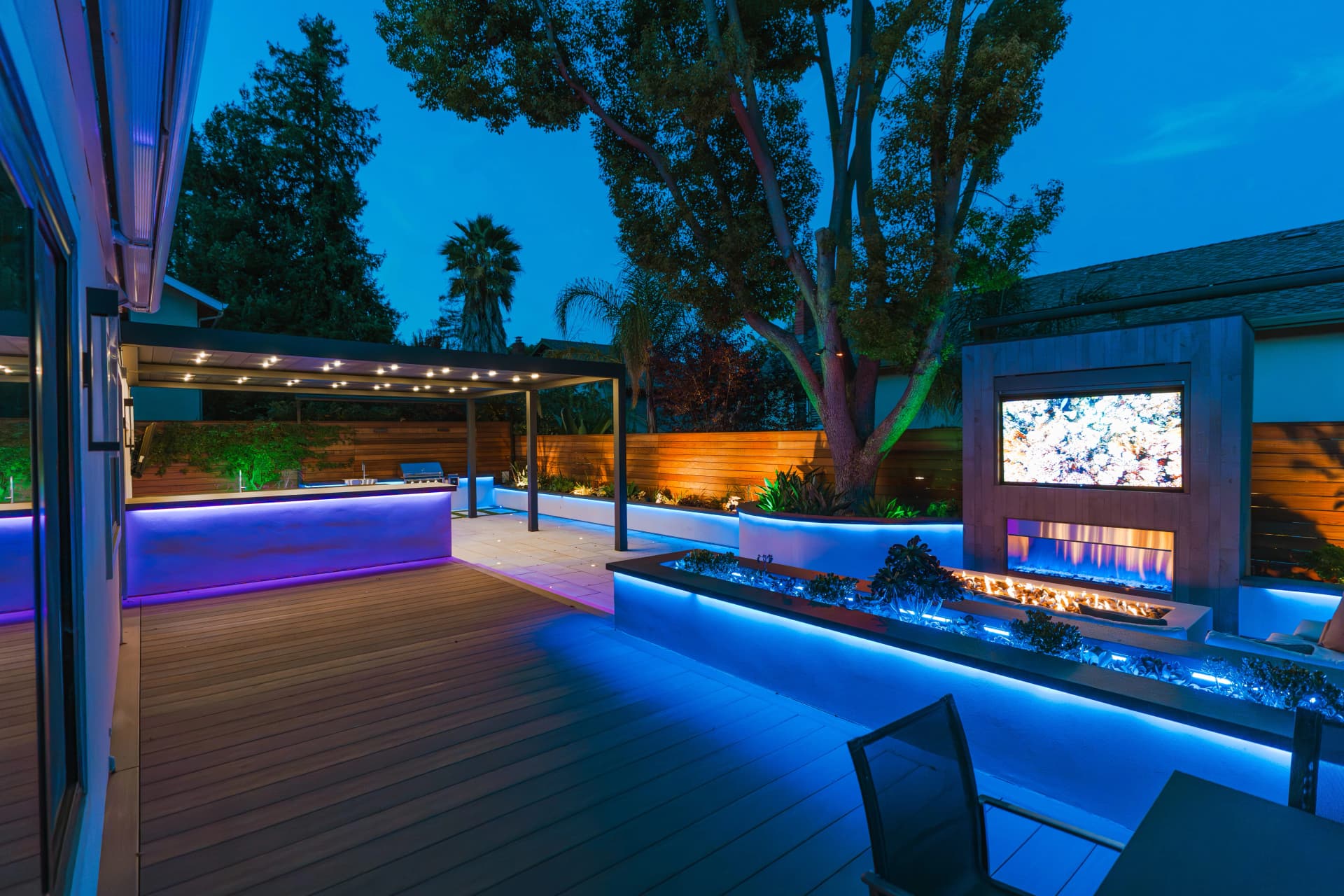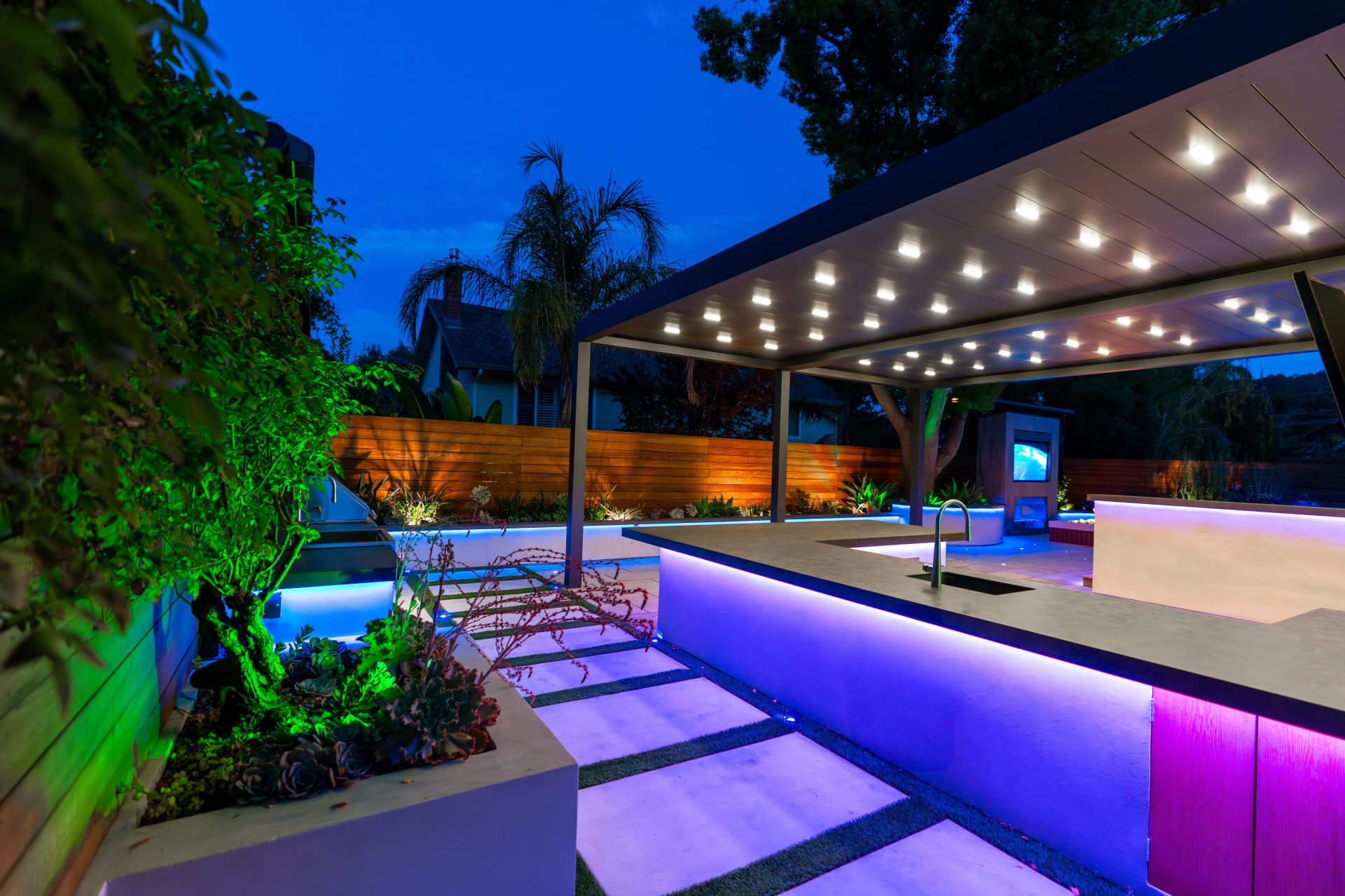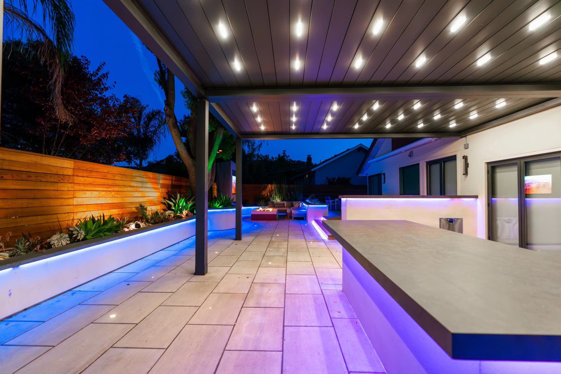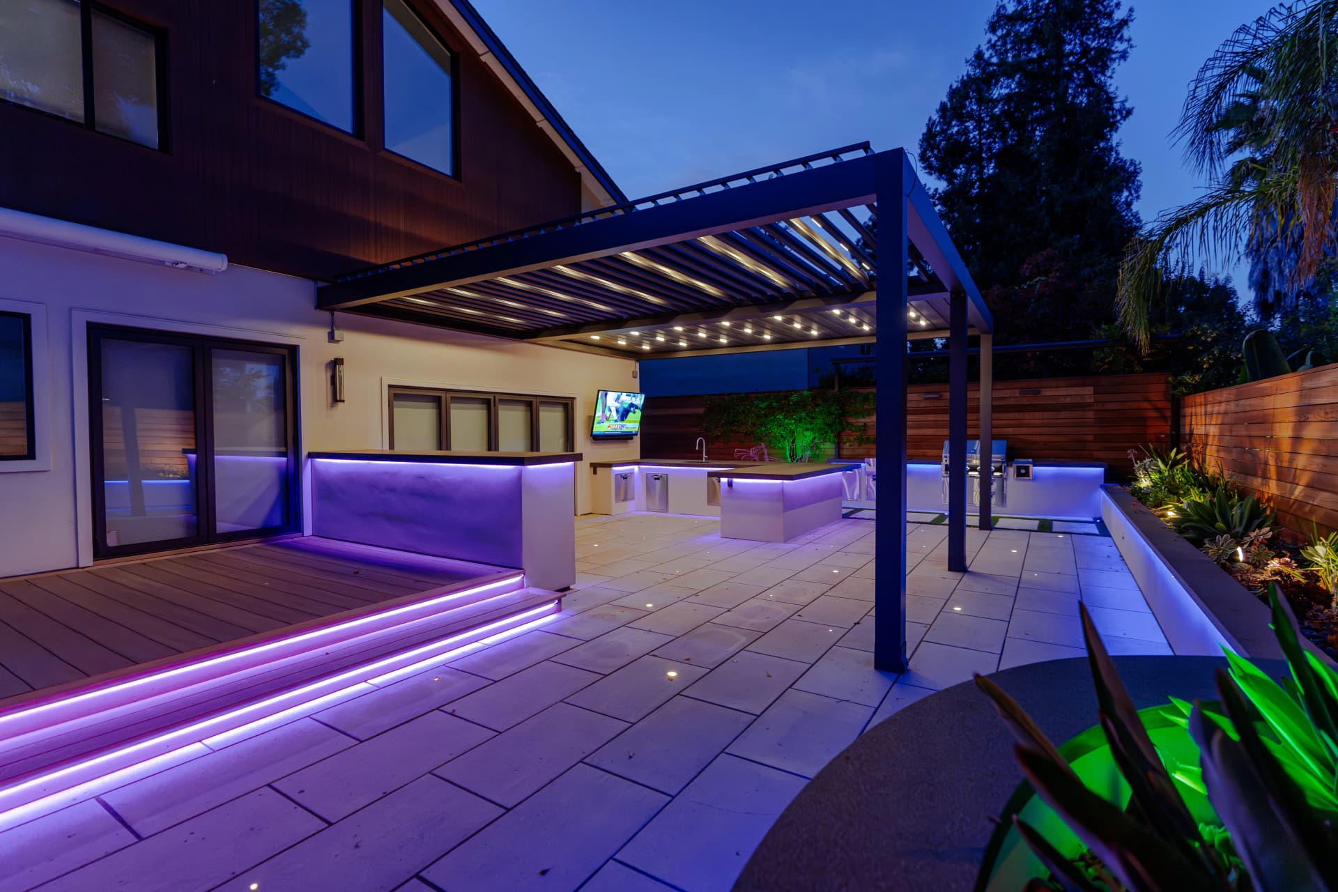 Alison, a South San Jose resident, enjoys spending her free time relaxing at home after a busy work schedule. Her backyard is designed as a peaceful retreat where she can unwind and enjoy the outdoor environment. To complement the beautiful landscape design of the property, we installed a SunTent OneLouver | Tiltable pergola above the outdoor kitchen area. The system features two louver sections with individual control, allowing Alison to adjust shade and ventilation independently. The pergola is attached to the home’s existing wall, creating a seamless architectural extension of the house. Our system blends perfectly with the backyard’s elegant landscape design, completing the outdoor space with both beauty and functionality.
