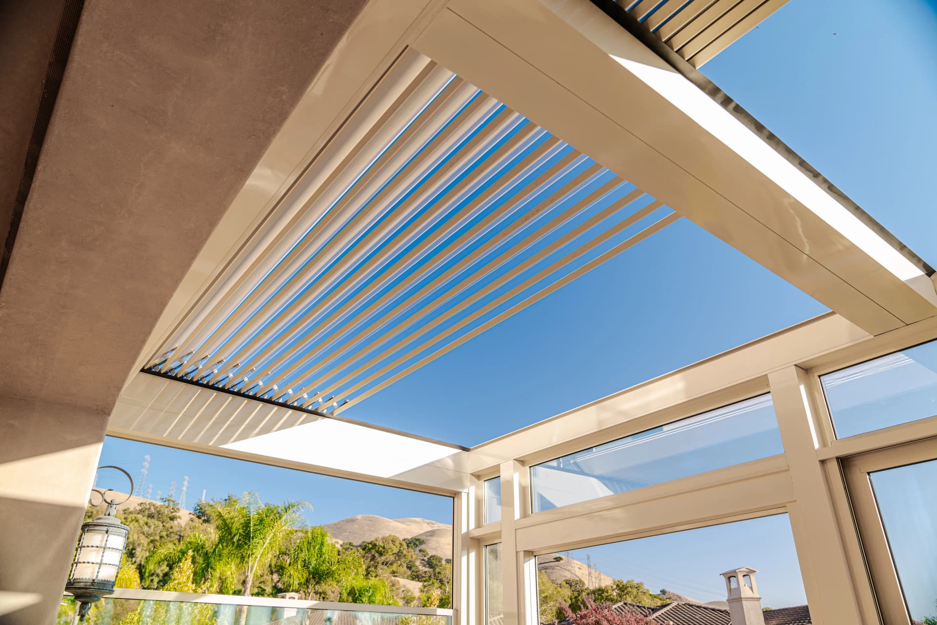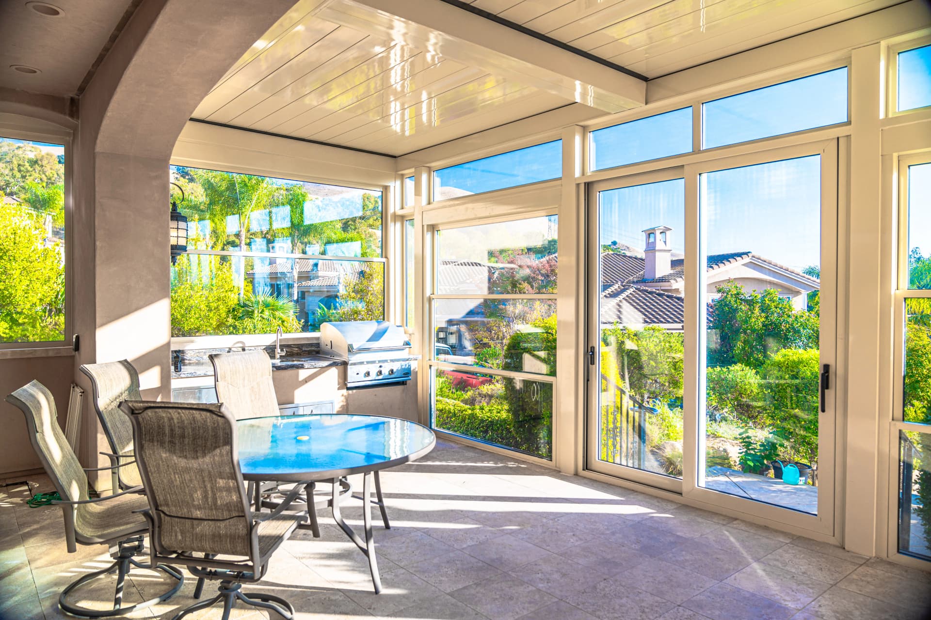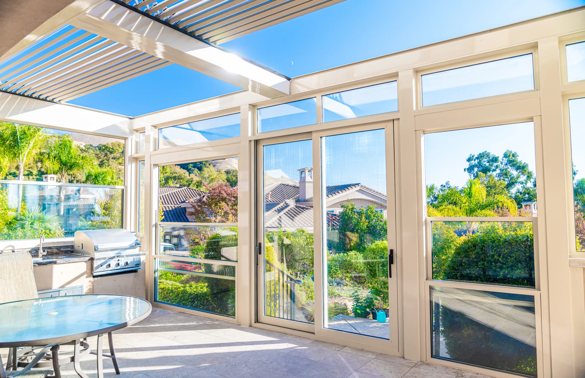 In this Fremont project, multiple SunTent systems were integrated across different areas of the home to create a cohesive outdoor living experience. For the patio’s outdoor kitchen area, we installed the SunTent OneLouver | Retractable Series, providing flexible shade and open-sky functionality. The enclosure was enhanced with motorized guillotine windows on the sides and sliding glass doors at the entrance for seamless access and protection. On another section of the home, we installed a GlassRoof system to create a bright and elegant covered seating area. By combining different systems, we designed both a comfortable outdoor kitchen enclosure and a relaxing lounge space. This hybrid approach allowed the homeowner to enjoy the backyard in multiple ways while maintaining a refined architectural look and year-round comfort.